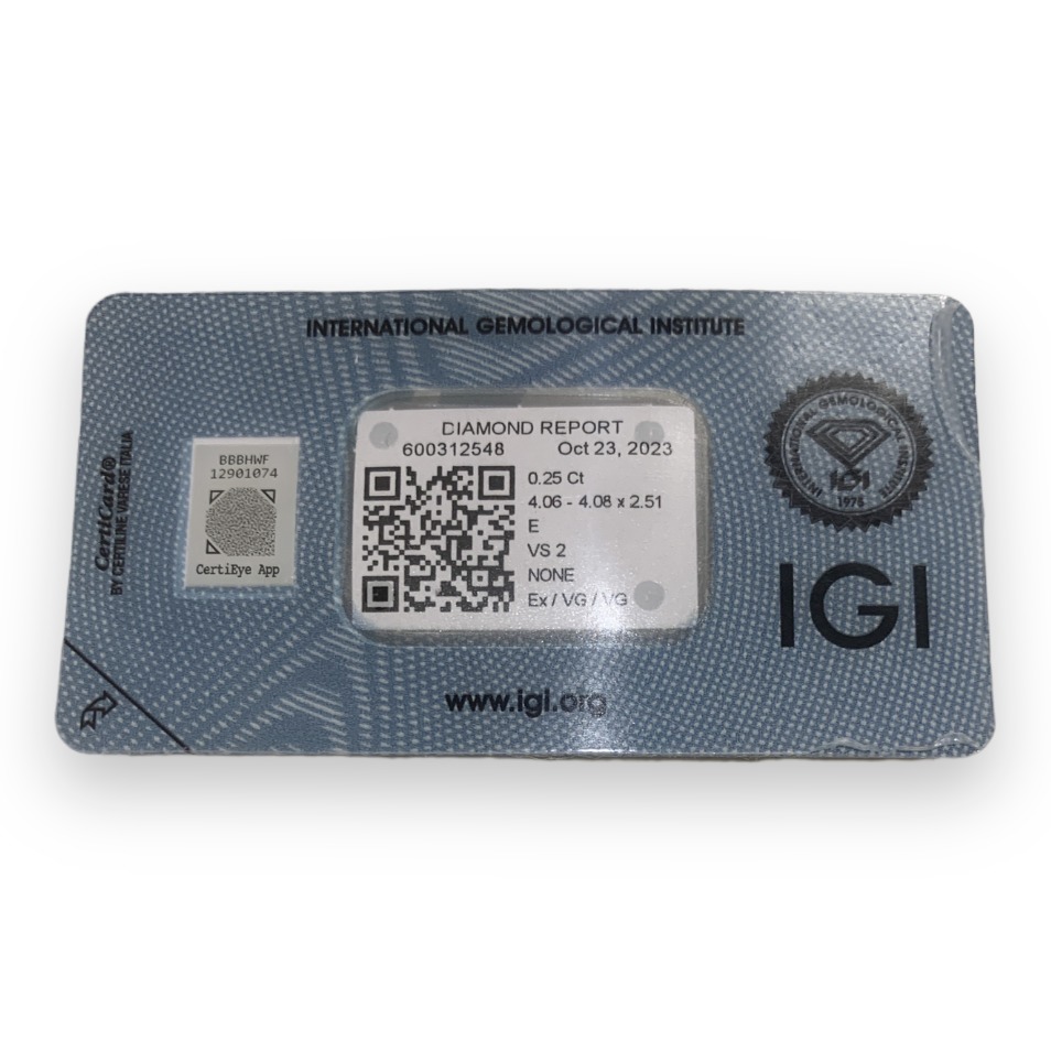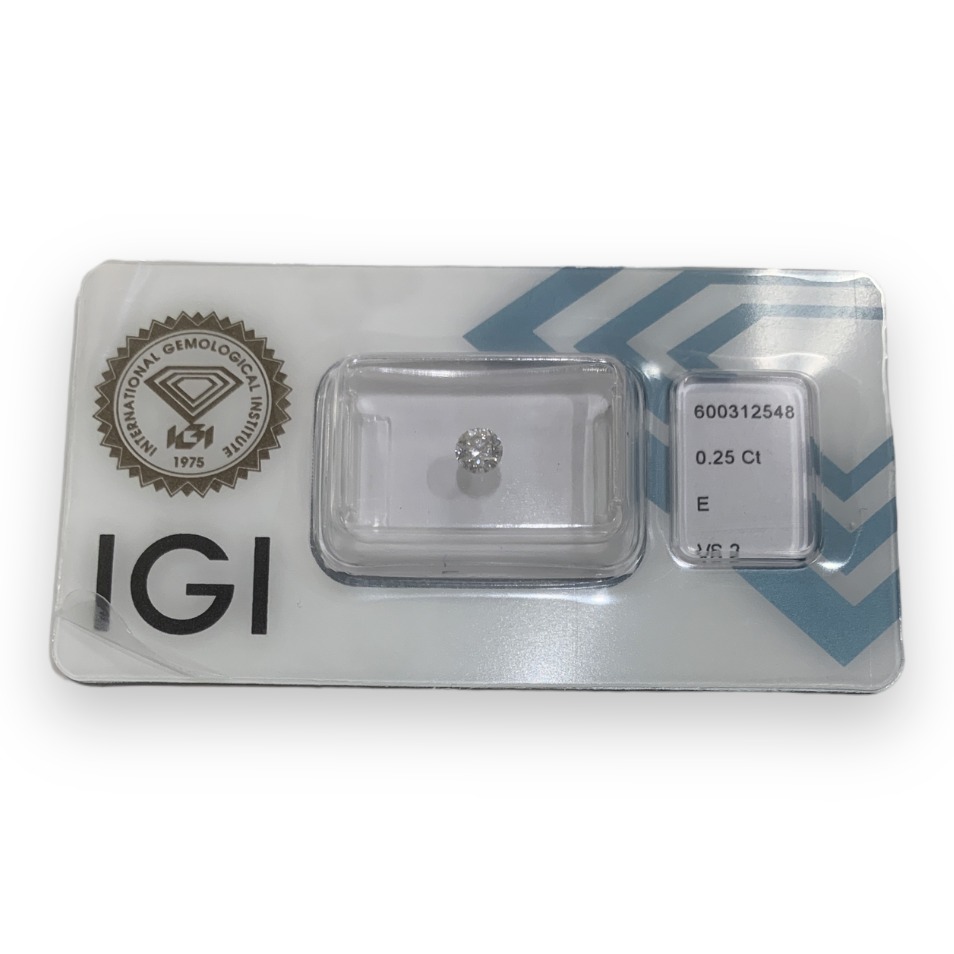 Diamante Naturale in Blister Sigillato da 0,25 ct, colore E, purezza VS2. Certificato IGI.