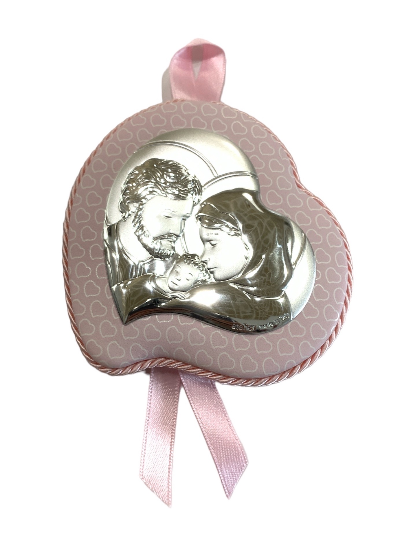 Capoculla Medaglione bimba a cuore “Sacra Famiglia” in argento by Atelier