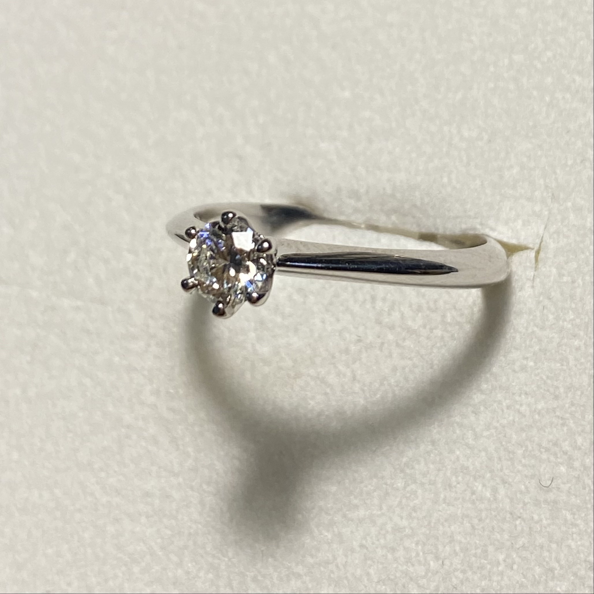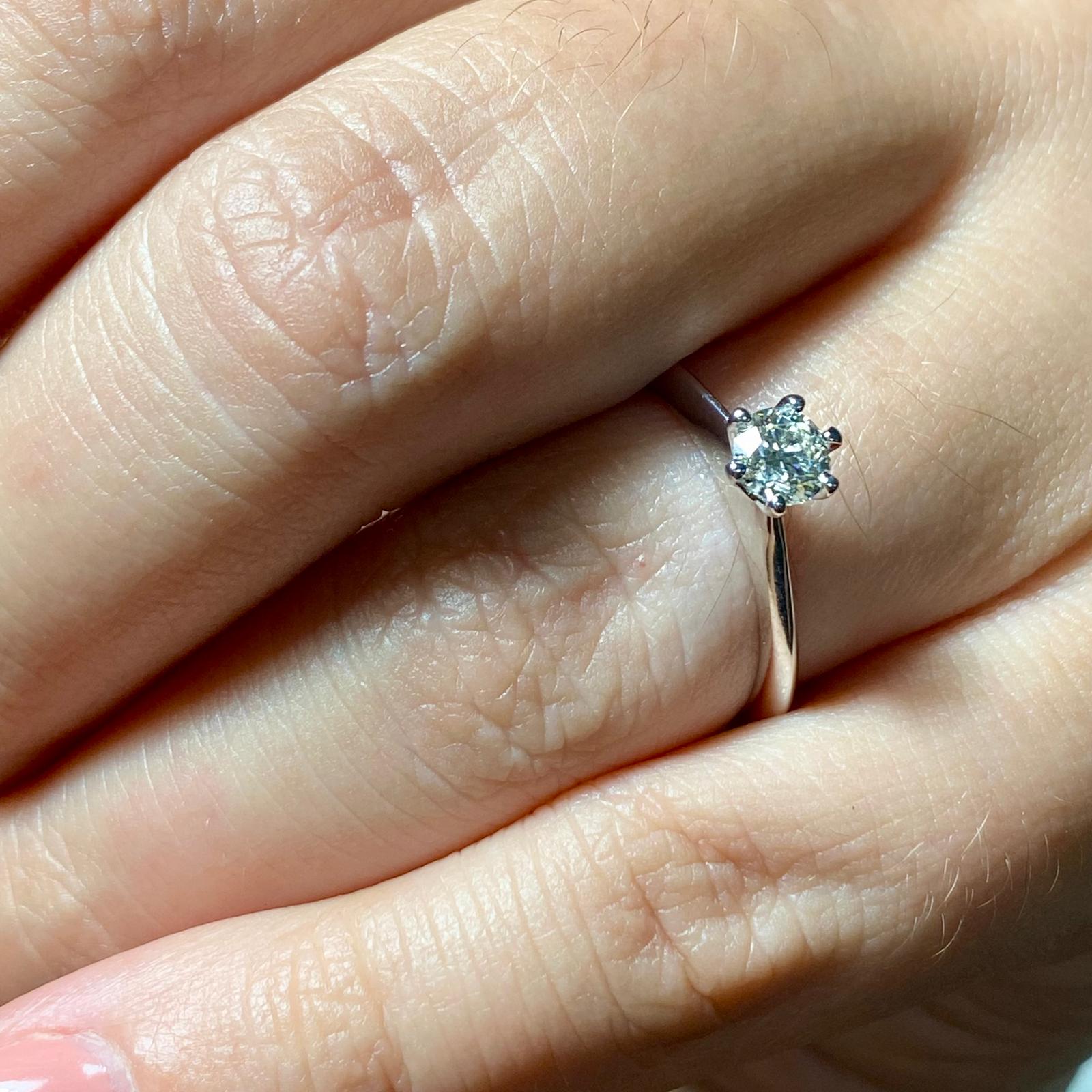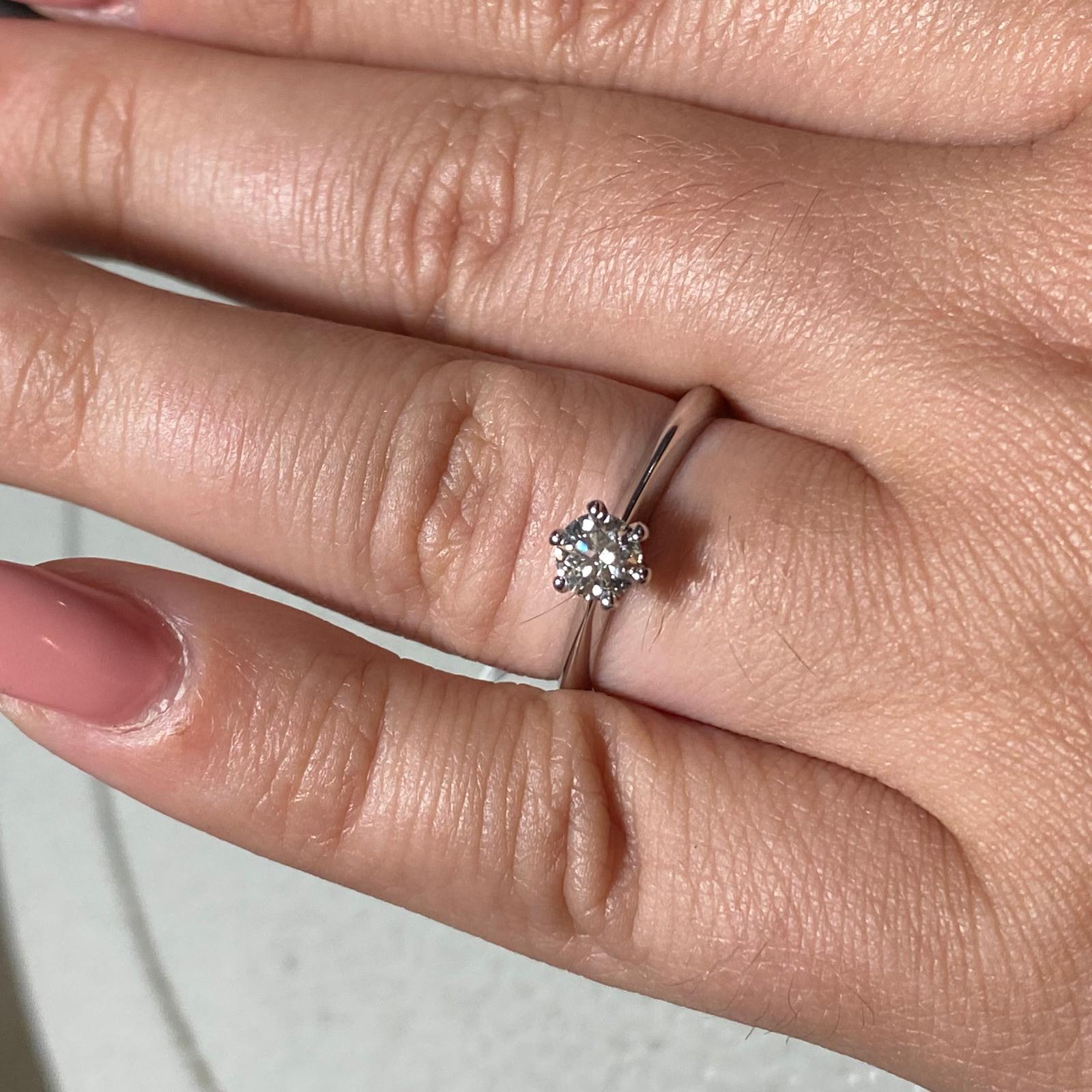 Anello solitario modello Tiffany in oro bianco e diamanti