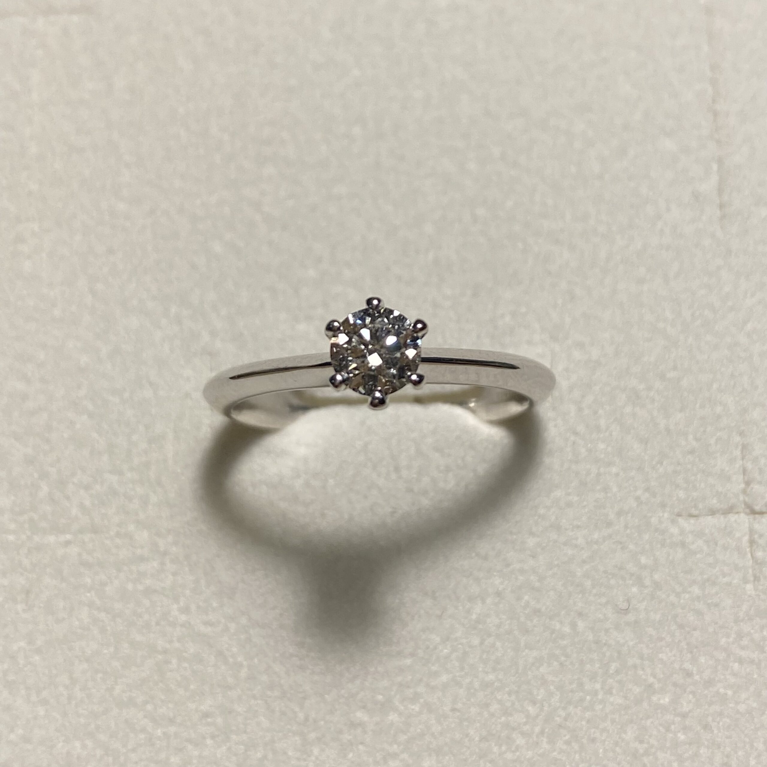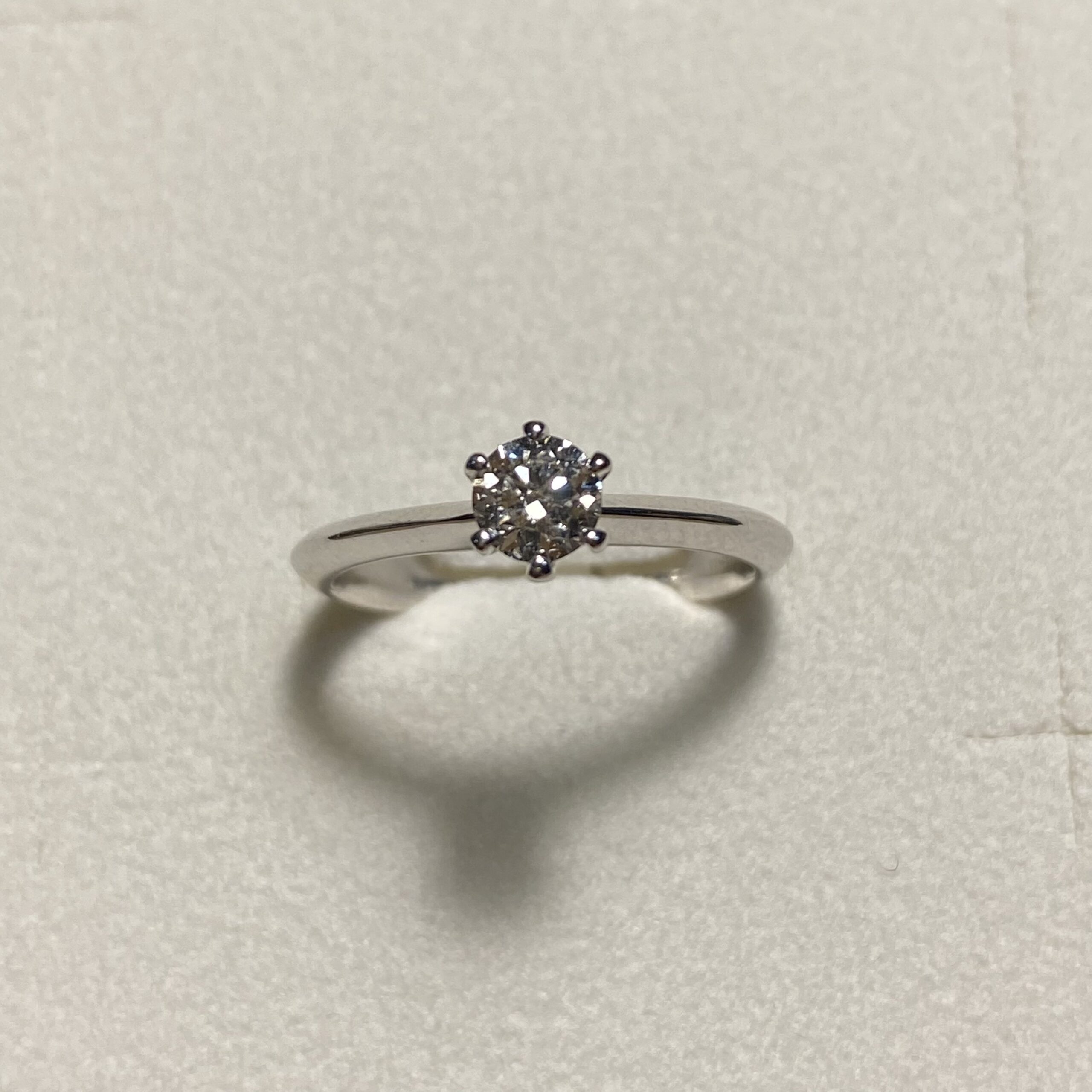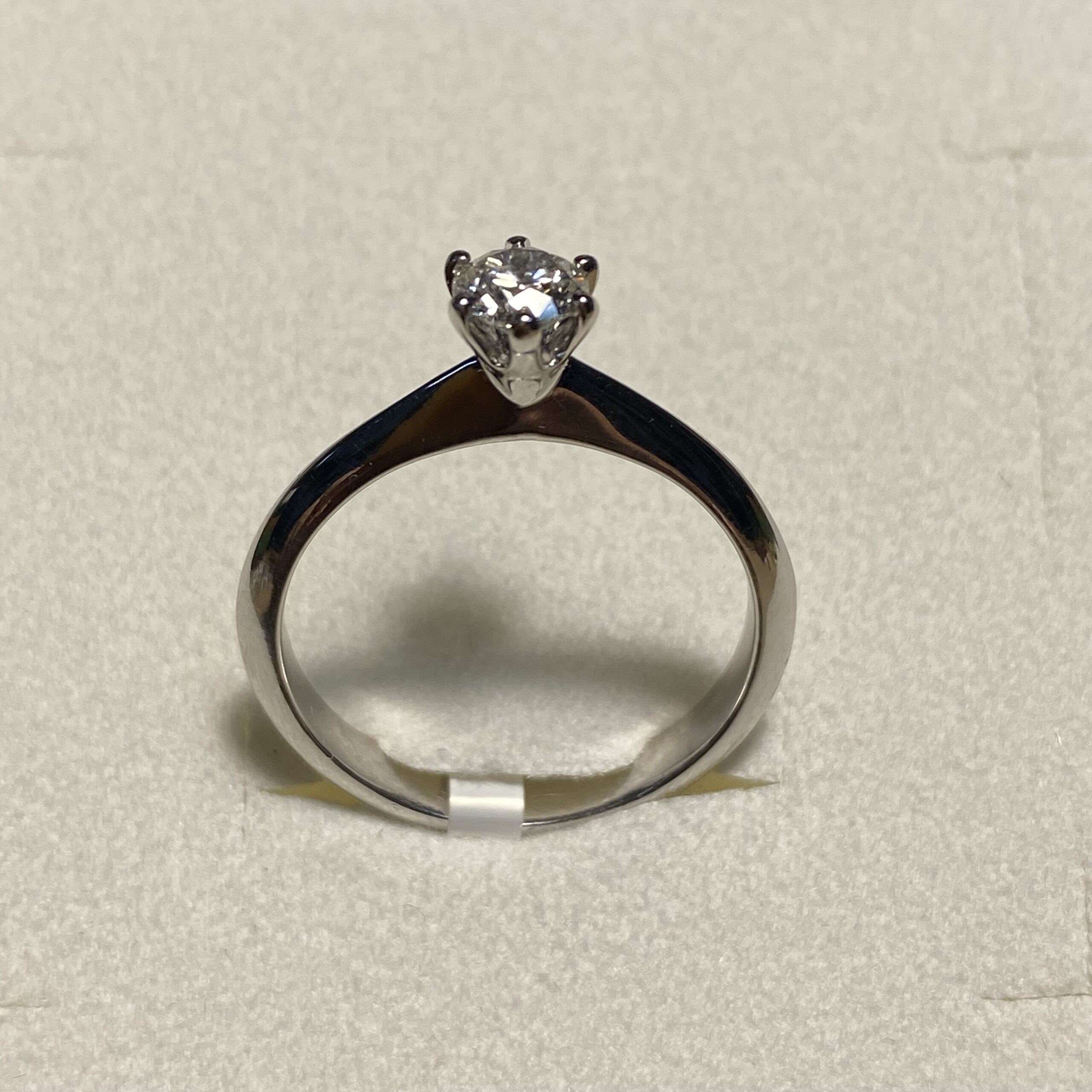 Anello solitario modello Tiffany in oro bianco e diamanti
