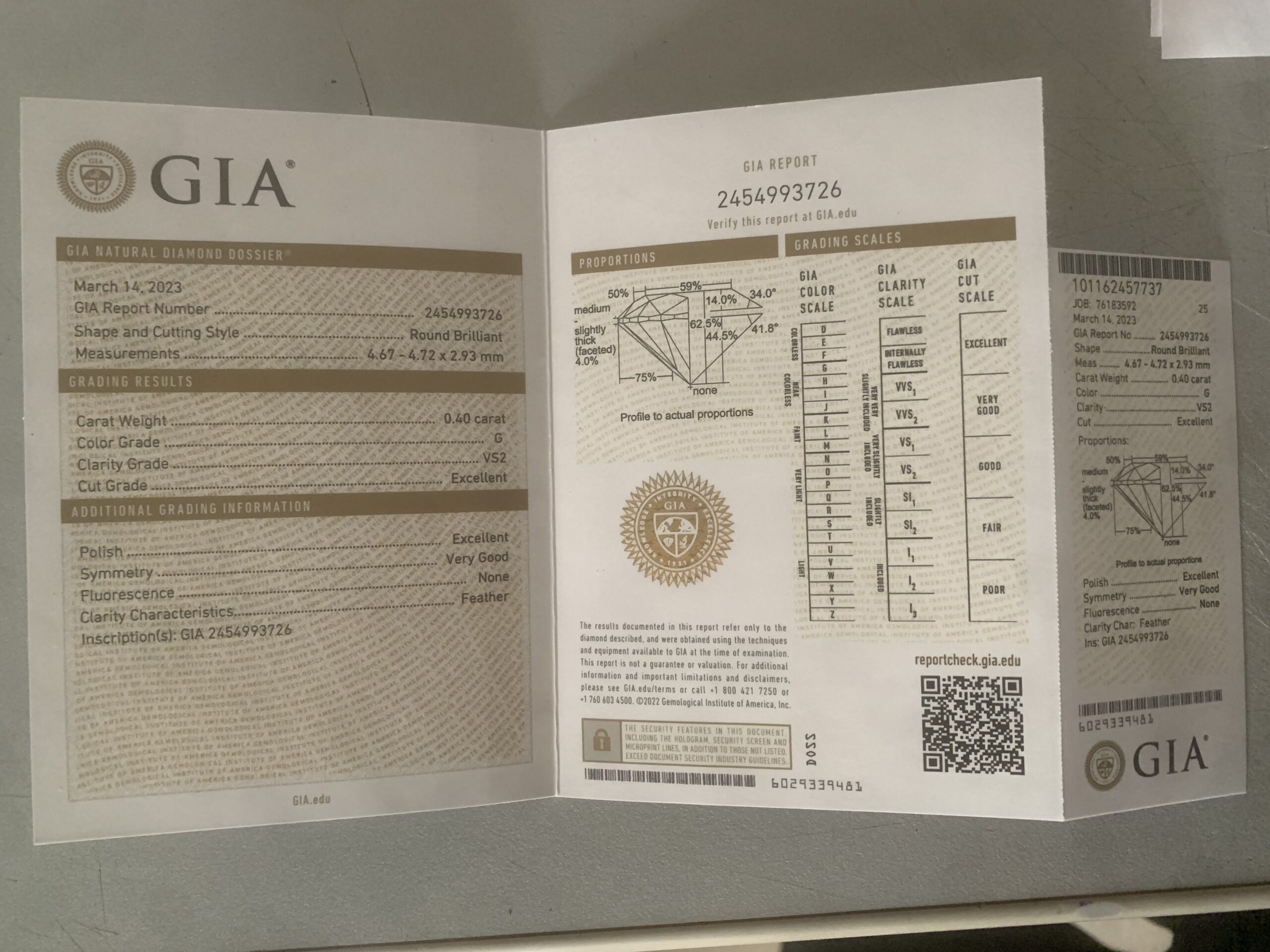 Diamante 0,40 ct., colore G, purezza VS.
